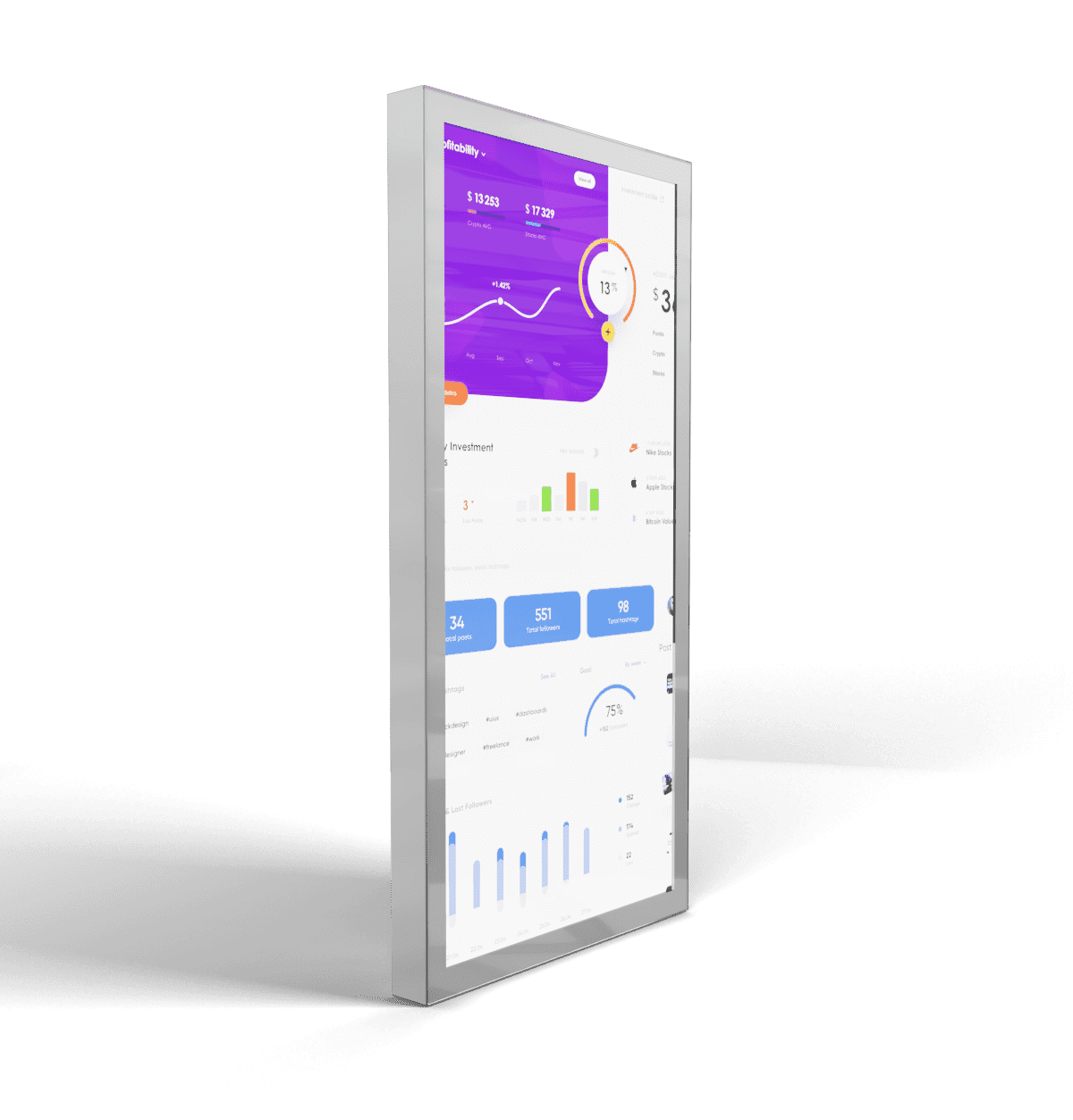 - Оптимальный размер и многофункциональность — диагональ 43 дюйма оптимальна для размещения в офисных пространствах, зонах ресепшен и переговорных. Панель сочетает несколько функций: интерактивная доска, информационный дисплей, зеркало и элемент декора.