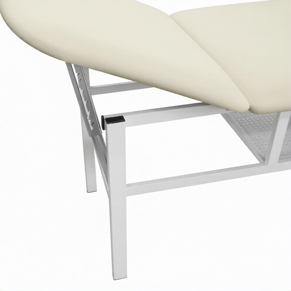лежак и подголовник кушетки крепятся к каркасу с помощью пробивных (поневежских) гаек винтами – это более самое надёжное крепление (в отличие от саморезов). Лёгкая и точная сборка