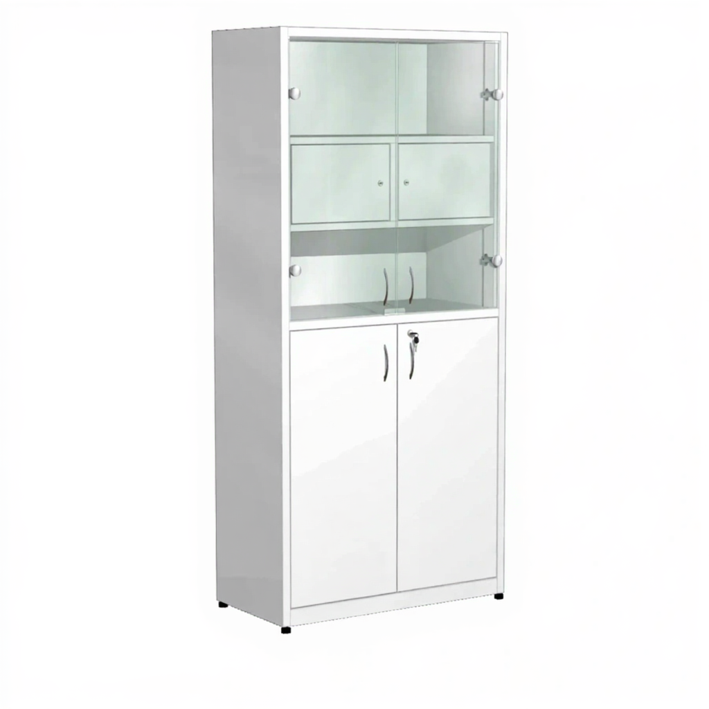 Шкаф металлический для медикаментов с сейфом (стекло) ШдМ-5 (белый) активно используются в больницах, лабораториях, аптеках, где необходимо хранение медикаментов, медицинского инвентаря, одежды работников, приборов, больничной документации.