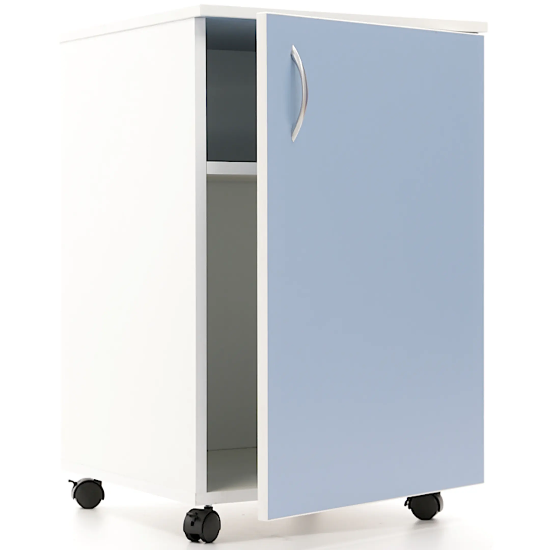Тумба может быть использована для медицинских инструментов, небольшой аппаратуры или в качестве приставного элемента мебели у рабочего стола или кровати.