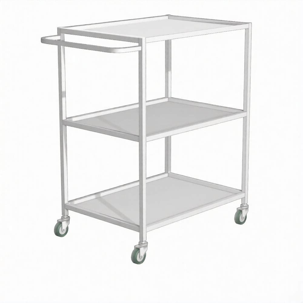 - Три металлические полки — все полки выполнены из стального листа с полимерно-порошковым покрытием, устойчивым к обработке дезинфицирующими средствами.