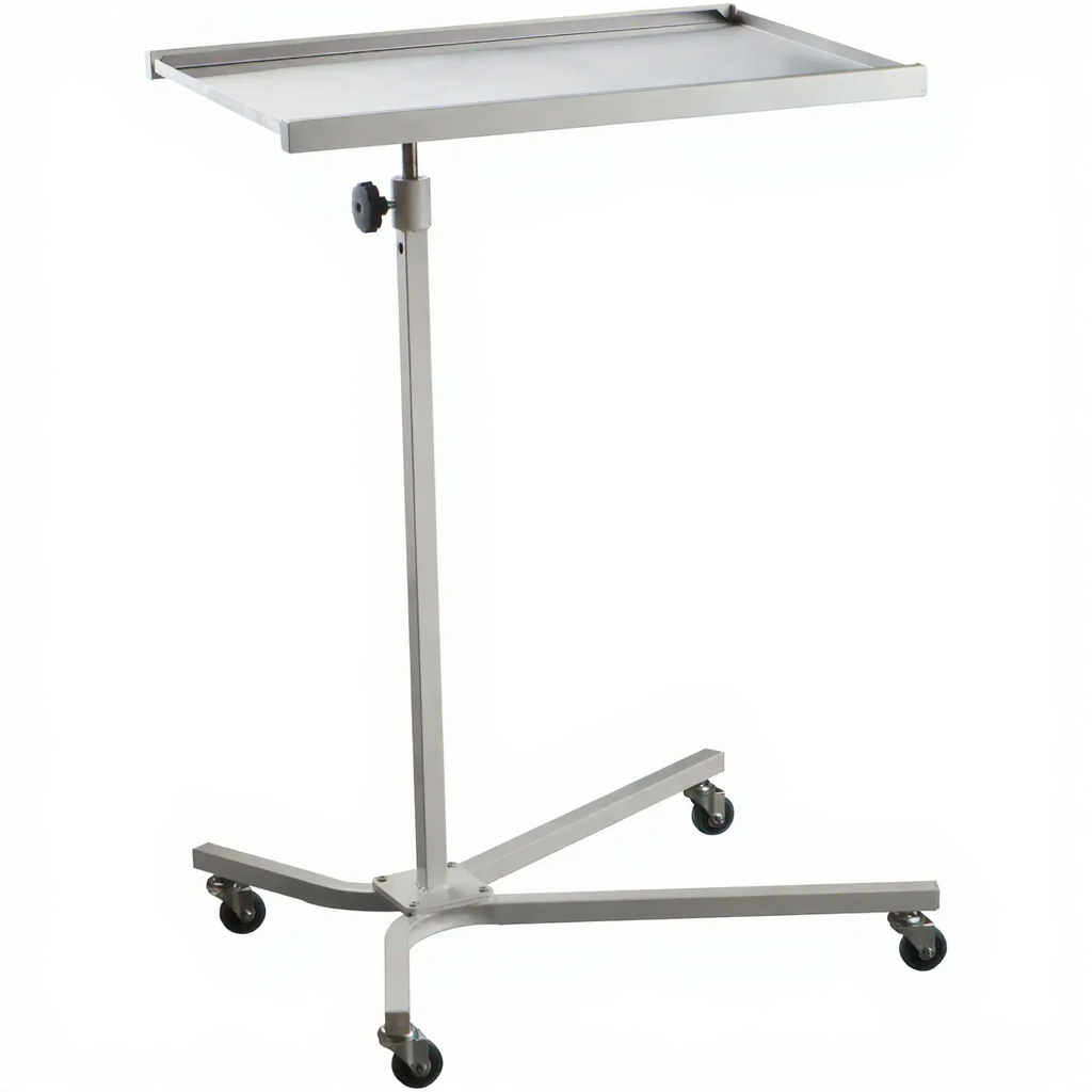 - Материалы из нержавеющей стали — столешница толщиной 0,8 мм и выдвижная стойка выполнены из нержавеющей стали, устойчивой к коррозии и обработке дезинфицирующими средствами.