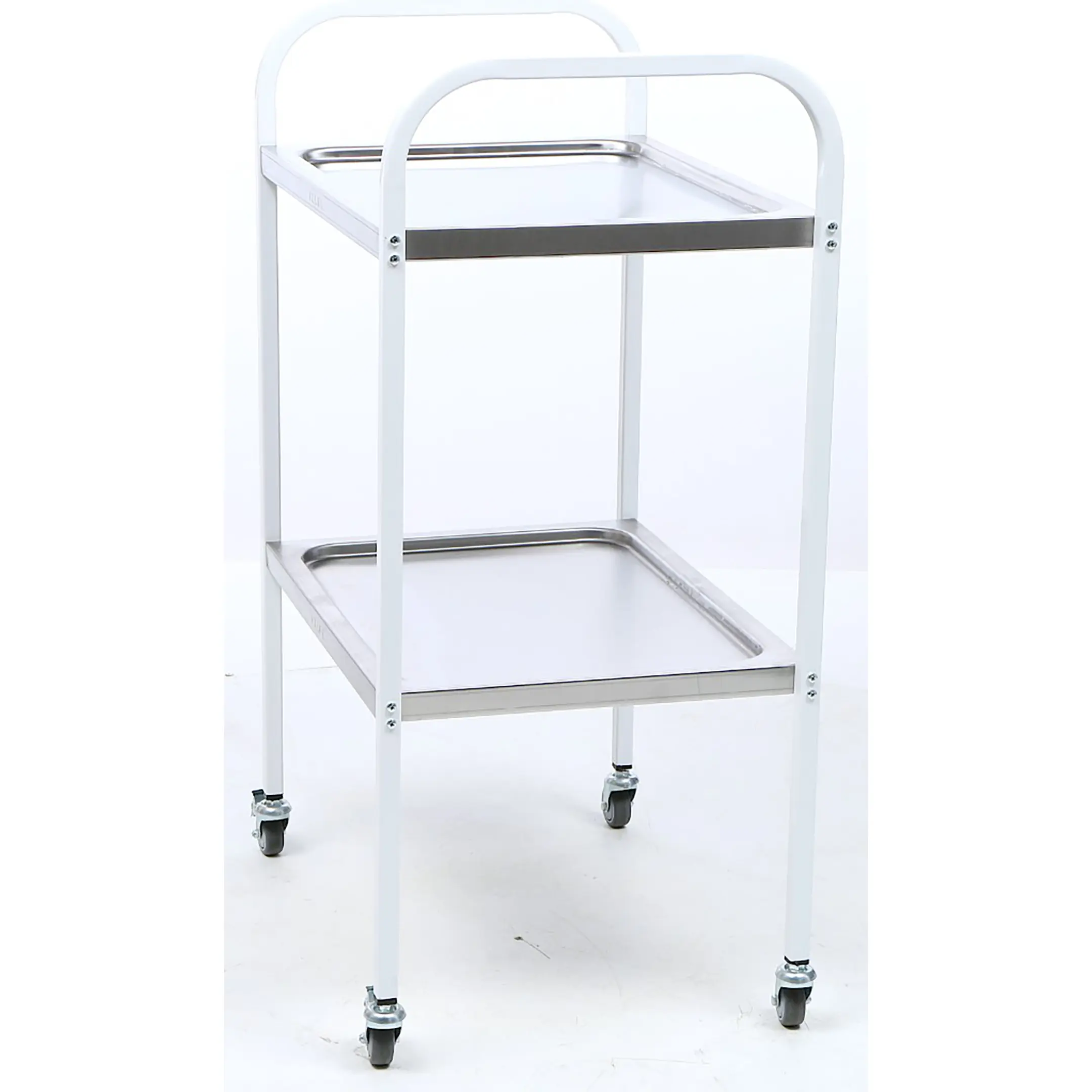 • Столик процедурный имеет 4 колеса из немаркой резины, D= 50 мм. Два колеса снабжены тормозом;