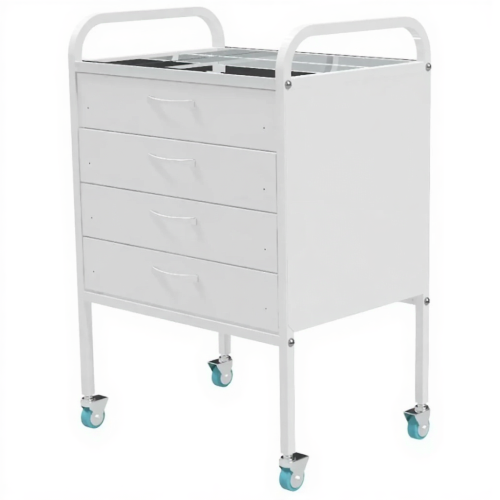 - Верхняя полка из нержавеющей стали — размером 535×375 мм, устойчива к коррозии и воздействию дезинфицирующих средств, служит для хранения наиболее часто используемых предметов.
