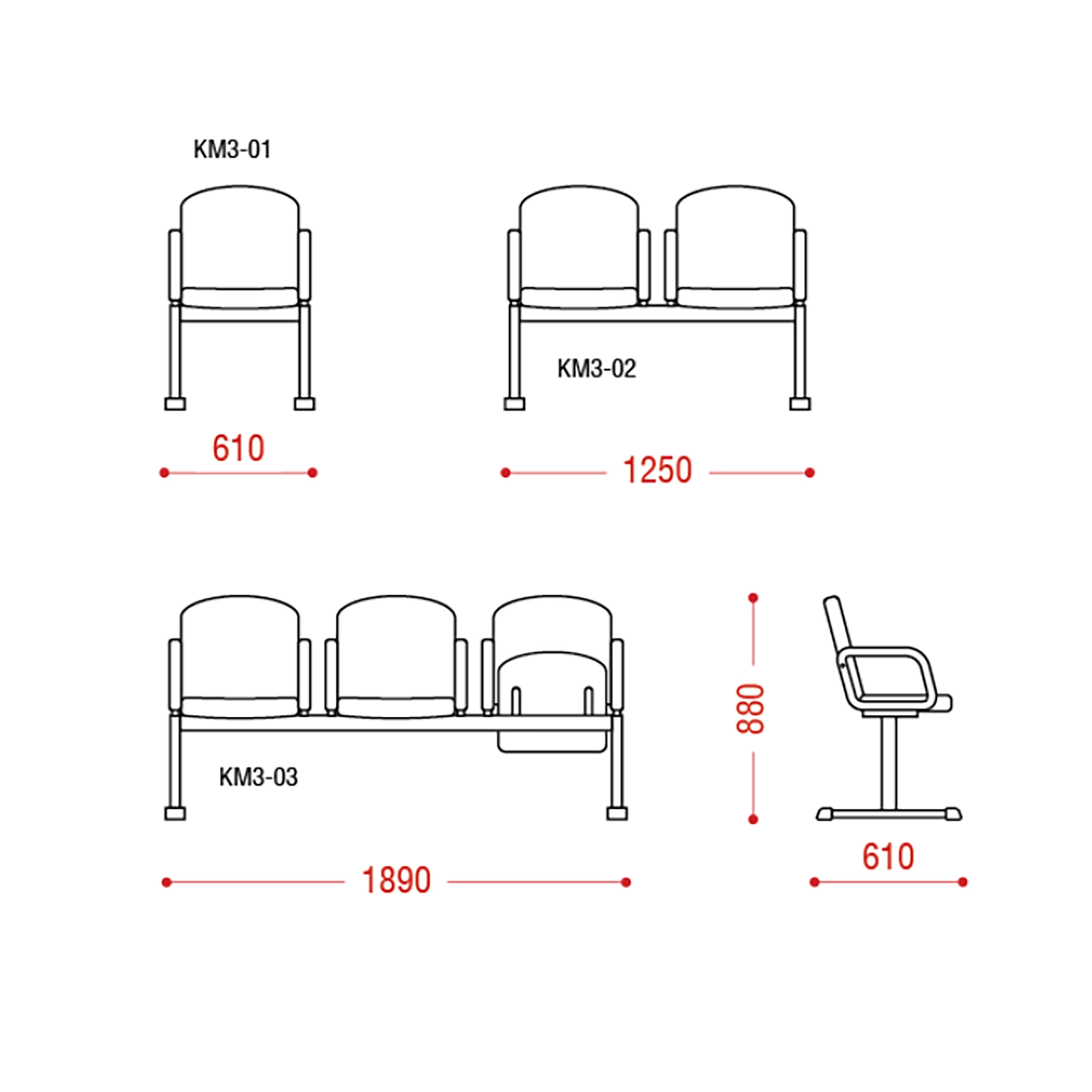 Многоместная секция Камилла (модель КМ 3) — это комфортное и доступное решение для оснащения конференц-залов, актовых залов, кинотеатров и учебных аудиторий. В этой многоместной секции будут себя комфортно чувствовать участники конференций, зрители концертов и кинофильмов. Секции многоместных кресел откидные, с ручным механизмом. Удобство и эргономика в сочетании с доступной ценой делают многоместное кресло особо привлекательным в своем классе.