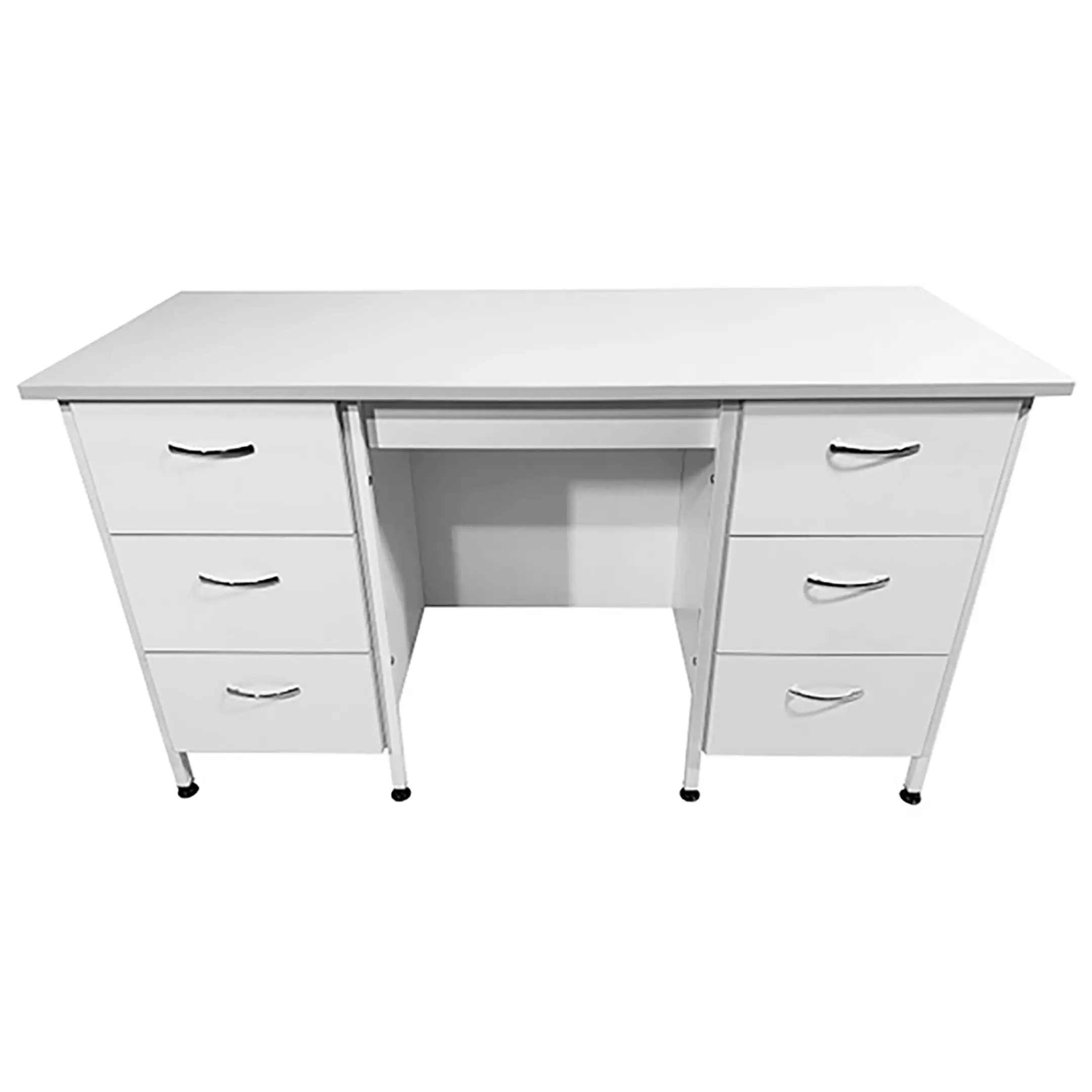 Стол лабораторный СЛ 12.015 (белый) — это идеальное решение для создания удобного и функционального рабочего места сотрудников в лабораториях и медицинских учреждениях. Модель оснащена тумбами с тремя выдвижными ящиками и защитным экраном из ЛДСП. Каркас выполнен из стального профиля, столешница из ЛДСП толщиной 22 мм.