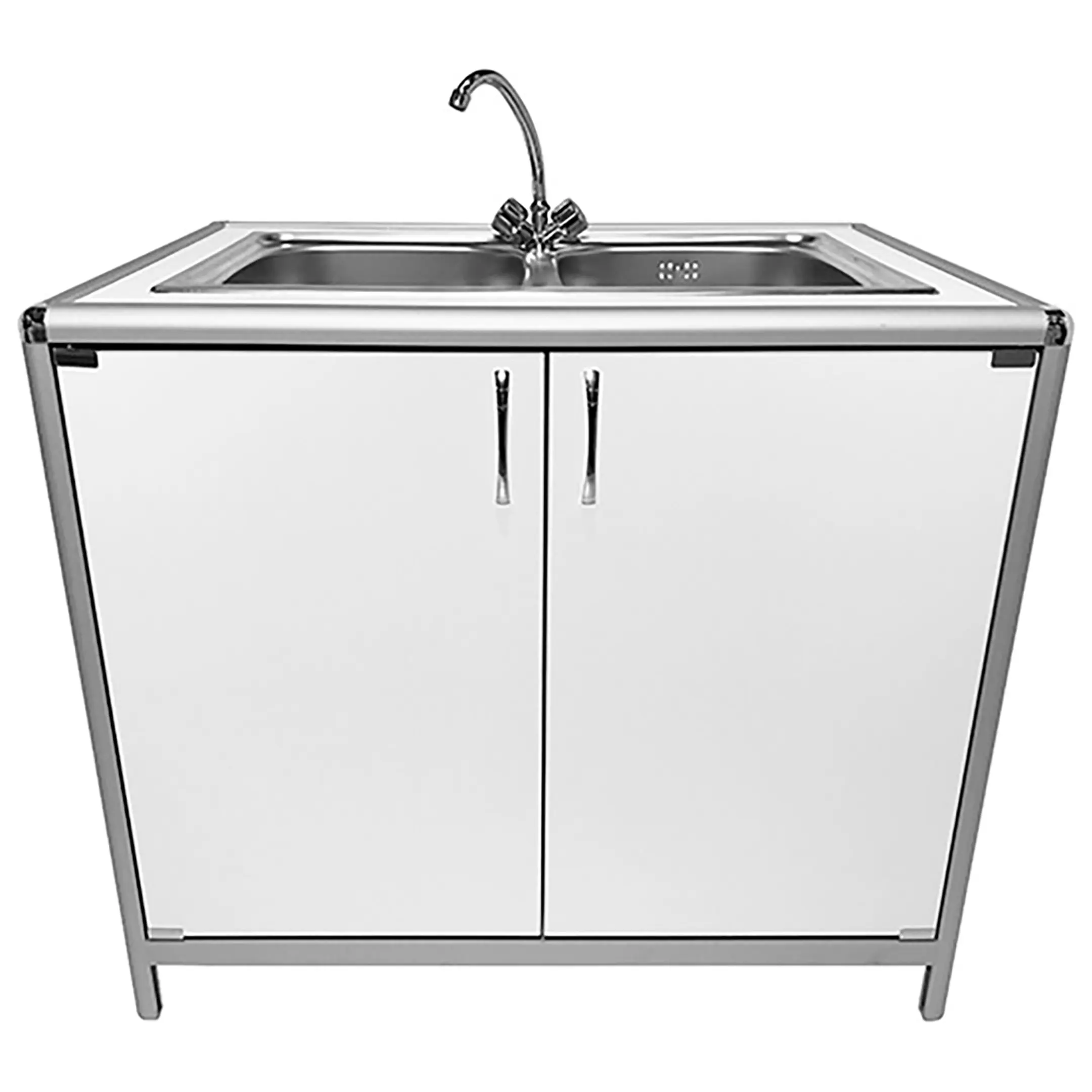 Стол-мойка лабораторная MED 13.003al (белый) является эффективным и удобным оборудованием, специально разработанным для установки в лабораториях и медицинских учреждениях. Модель оснащена двухчашечной мойкой со смесителем и тумбой под мойкой с двумя дверцами. Каркас выполнен из алюминиевого профиля, столешница и обшивка из ЛДСП.