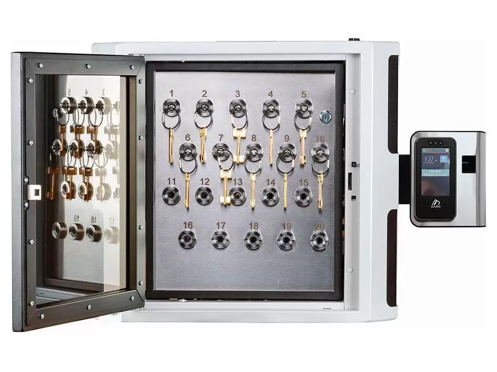 - Надежный контроль доступа для ограниченного круга лиц — система обеспечивает авторизацию пользователей по отпечатку пальца, RFID-карте или PIN-коду, гарантируя, что доступ к ключам имеют только уполномоченные сотрудники, и фиксируя каждое действие в журнале событий.
