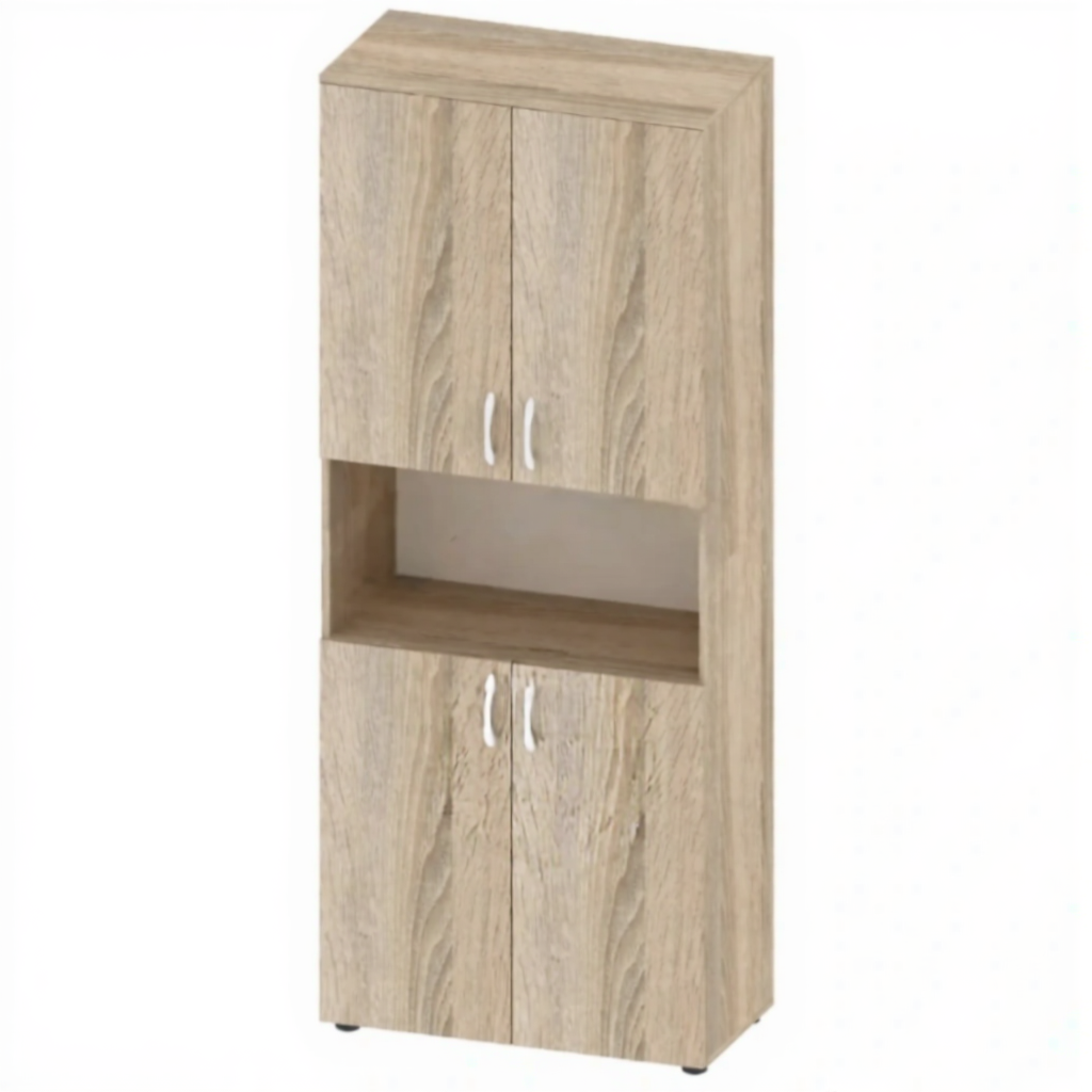- Комбинированная конструкция — две закрытые секции для защиты материалов от пыли и открытая полка для быстрого доступа к часто используемым пособиям.