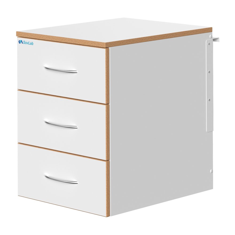 Тумба подвесная низкая СОВЛАБ 400-3-ТЯпн — это функциональное лабораторное оборудование, предназначенное для хранения лабораторного оборудования, инструментов и мелкого инвентаря. Модель оснащена тремя выдвижными ящиками на телескопических направляющих полного выдвижения и комплектуется металлическими кронштейнами для настенного монтажа или установки на лабораторные столы серии СОВЛАБ.