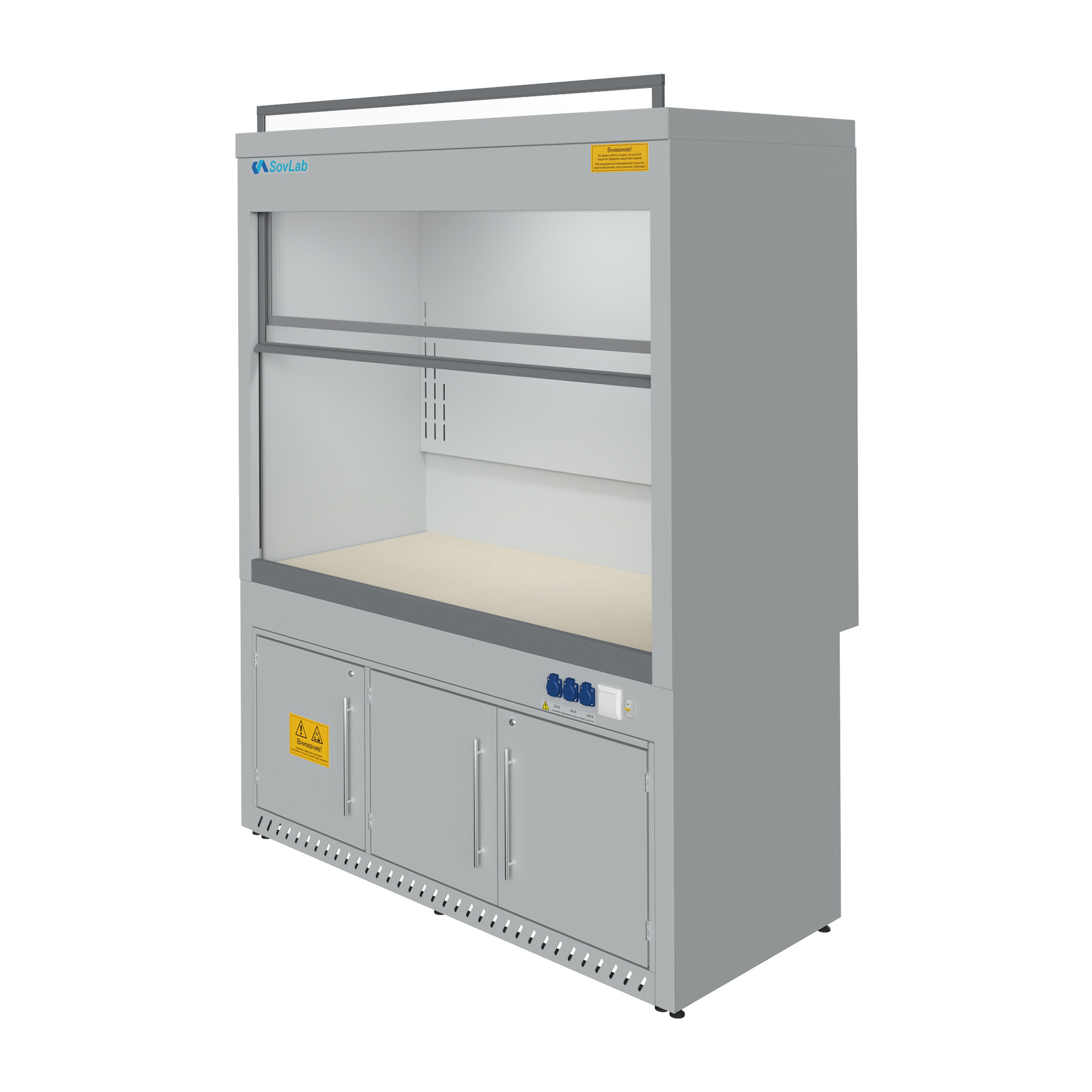 - Химически стойкие материалы — рабочая поверхность из керамогранитной плитки, внутренние панели из листового химически стойкого негорючего пластика.