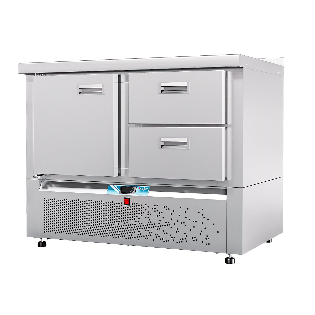 Особенности Электронная панель управления; потребление электроэнергии за сутки, кВт*ч, не более 3,36; климатический класс изделия - 5; поверхность стола - ровная неохлаждаемая поверхность без борта; толщина стенок 60 мм; холодильный агрегат расположен снизу, выдвижной для удобства обслуживания; хладагент - R404a; электронный блок управления с возможностью регулирования и поддерживания необходимой температуры; динамическое охлаждение - воздухоохладитель с вентилятором для равномерного распределение температуры внутри полезного объема; работа при температуре окружающей среды до +42 °C, относительной влажности от 40 до 70%; цельнозаливной пенополиуретаном корпус; автоматическая оттайка; 2 секции - дверь и ящики 1/2; одна регулируемая по высоте полка-решетка размером GN 1/1; уплотнитель с магнитной вставкой на двери для обеспечения полной теплоизоляци; передняя и задняя стенки легкосъемные; регулируемые по высоте ножки, которые могут опционально быть заменены на колеса (2 со стопором, 2 без стопора) без изменения высоты стола. Описание Стол холодильный низкотемпературный с нижним расположением агрегата предназначен для кратковременного хранения пищевых продуктов на предприятиях общественного питания и торговли. Рациональное использование рабочего пространства кухни за счет совмещения в одном изделии функции холодильногошкафа и рабочего стола.