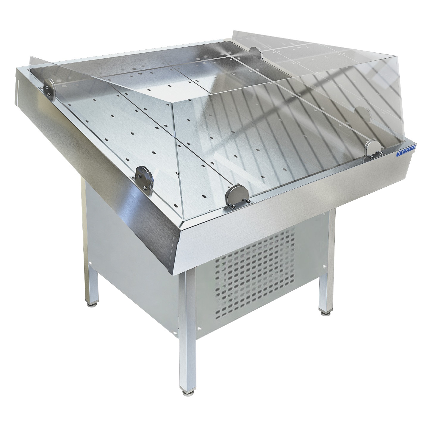 Особенности Фартук с 3-х сторон. Стекло с 3-х сторон. Ванна из нержавеющей стали марки AISI 304 толщиной 1,0 мм. Панели обшивки из нержавеющей стали марки AISI 430 толщиной 0,8мм. Сливные трубки диаметром 20 мм 2шт. Внутри ванны перфорированный поддон из нержавеющей стали марки AISI 430 толщиной 0,8мм для аккумулирования холода. Подставка сварная из трубы 40х40 нержавеющей стали марки AISI 304. Регулируемые опоры. Агрегат Danfoss, мощность 550 Вт. Стол поставляется в собранном виде. Описание Стол для выкладки рыбы на льду с агрегатом. Витрины для рыбы на льду предназначены для размещения, охлаждения и демонстрации свежей рыбы и других морепродуктов