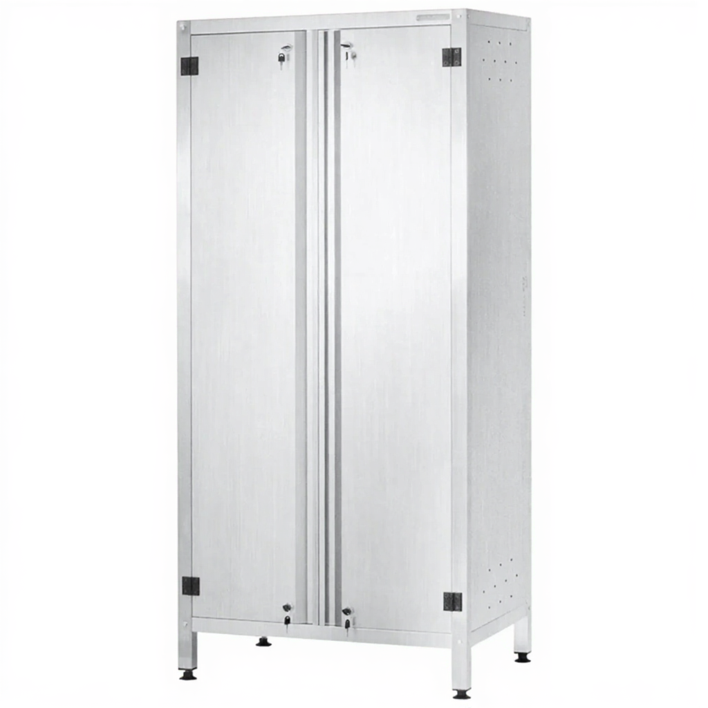 - Промышленная прочность и долговечность — конструкция из нержавеющей стали выдерживает значительные весовые нагрузки, устойчива к коррозии, механическим воздействиям, постоянной влажности и перепадам температур. Шкаф рассчитан на длительную интенсивную эксплуатацию в самых требовательных условиях.