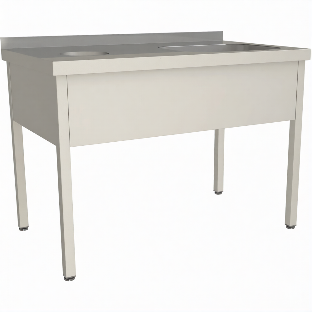 Стол для сбора пищевых отходов с ванной СПОВЦ/1-14/7-БО-П предназначен для применения на предприятиях общественного питания любого формата, пищевых производствах и пищеблоках.