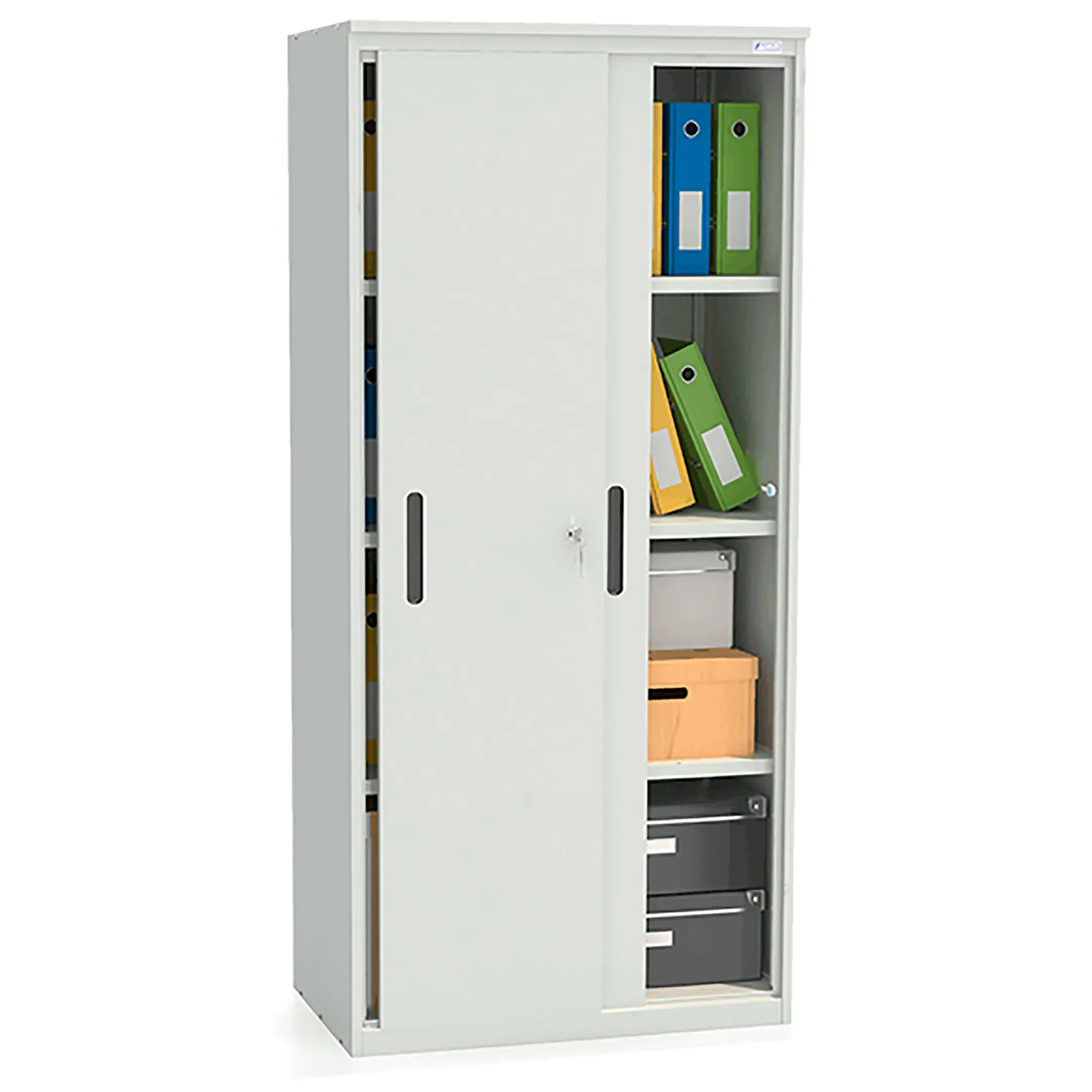 - Удобный доступ и эргономичность — раздвижные двери обеспечивают полный обзор и легкий доступ ко всему содержимому шкафа без необходимости отступать назад. Это делает работу с архивом удобной и быстрой.