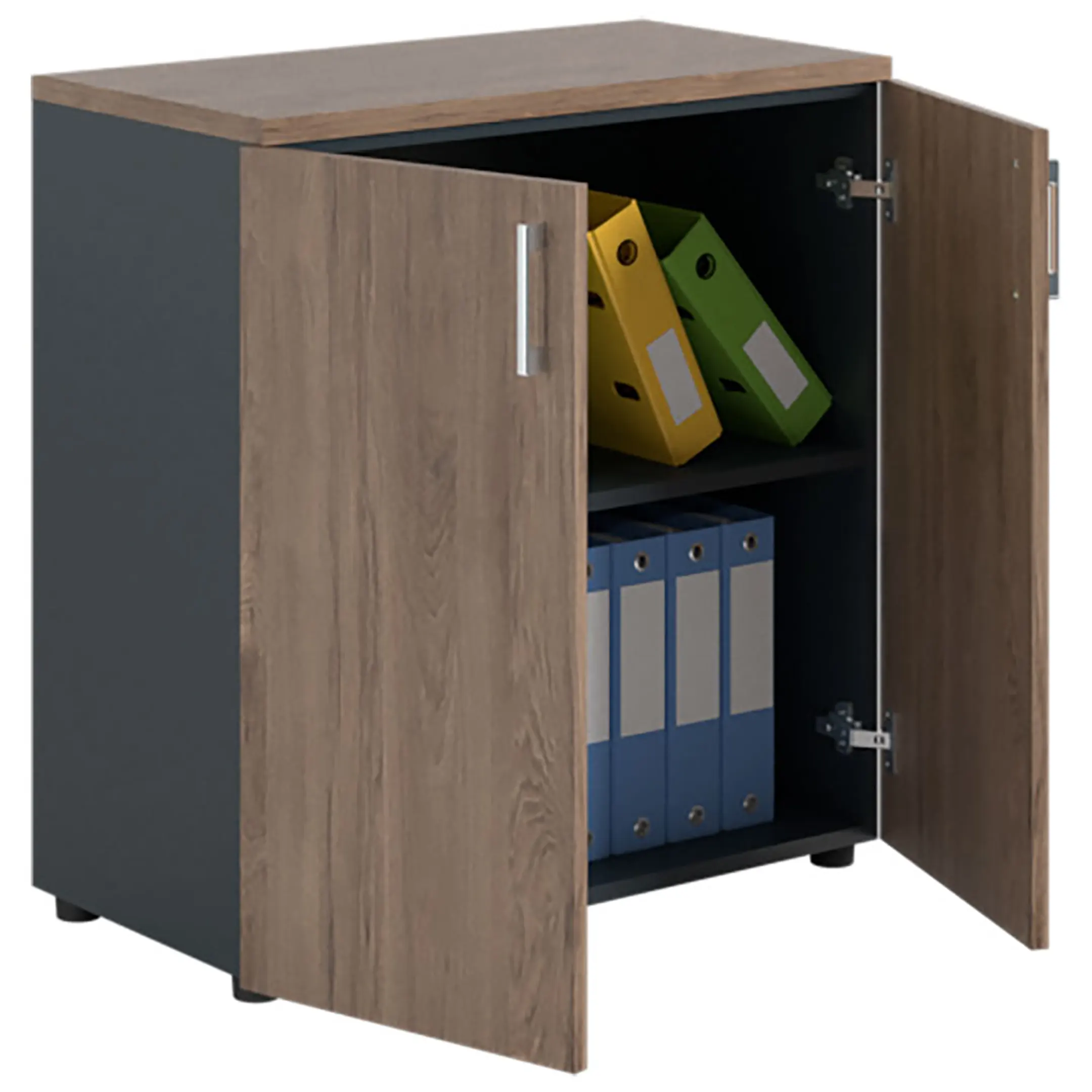 Шкаф NW 0880 закрытый темный орех/антрацит предназначен для хранения.
