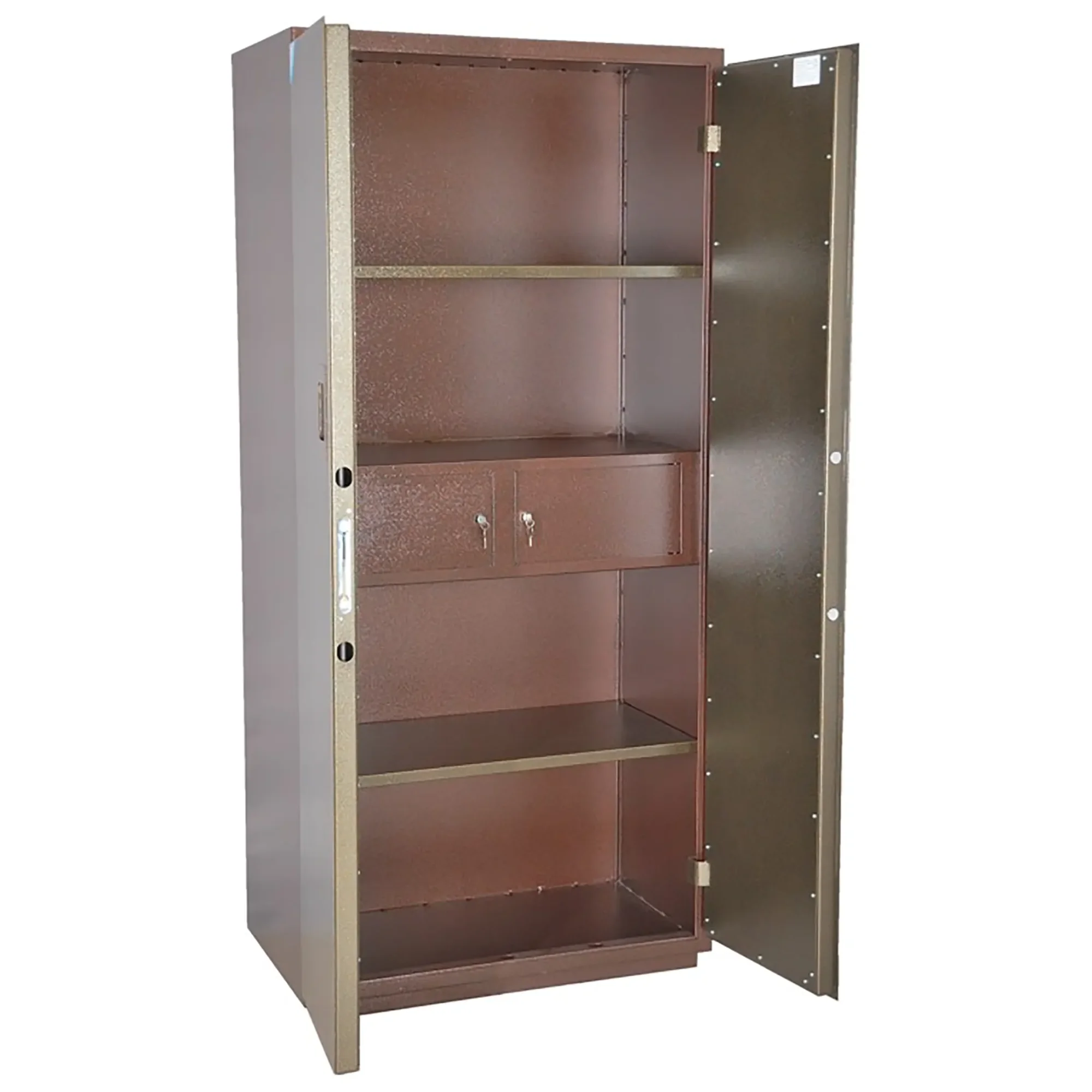 • Сейф односекционный, двухдверный, оснащен двумя съемными полками и двумя трейзерами.