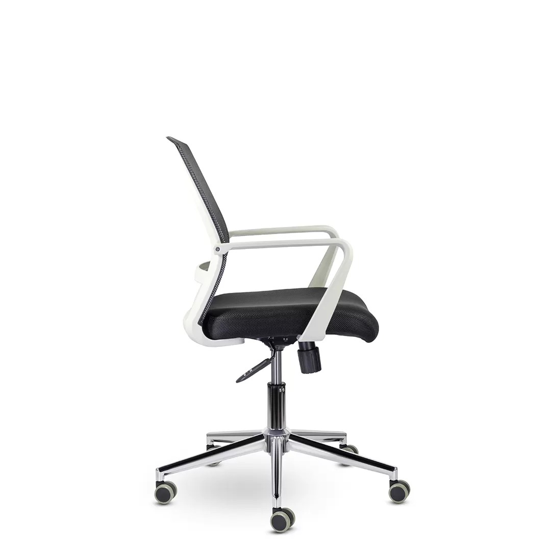 - Современный дизайн с хромированным каркасом — придаёт креслу аккуратный и стильный внешний вид, гармонирующий с офисными интерьерами и переговорными комнатами.