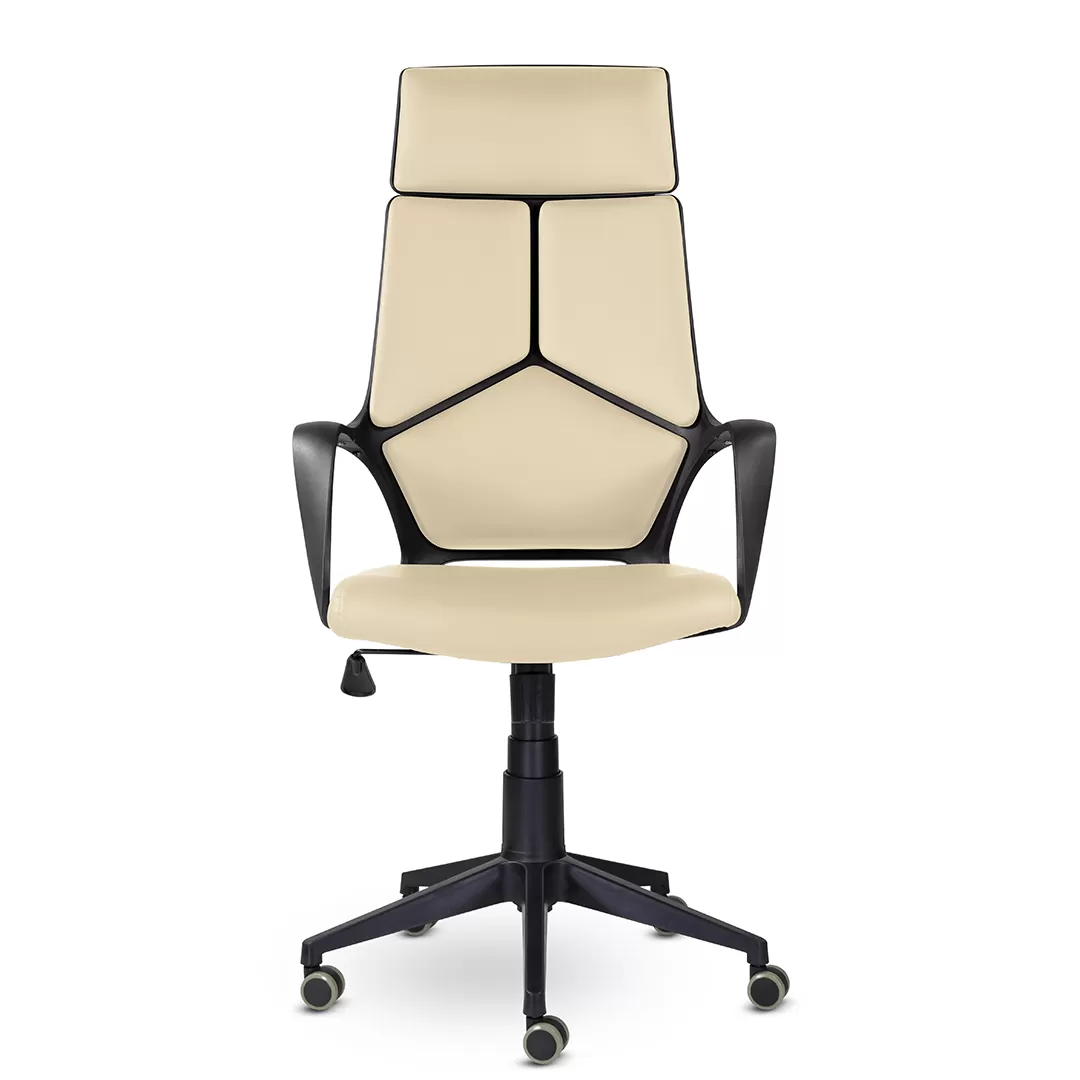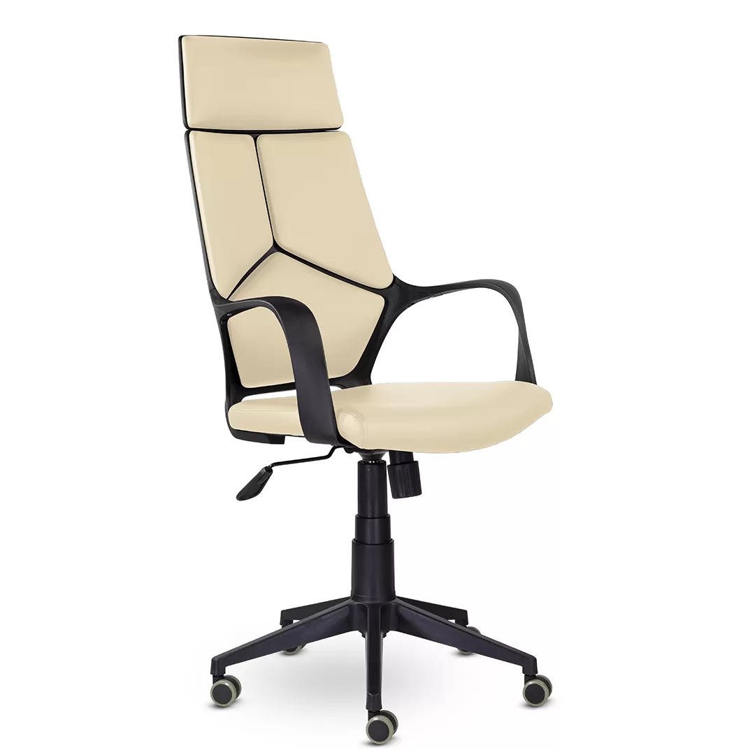 - Пластиковая крестовина и ролики — устойчивая основа и лёгкое перемещение по офисным покрытиям.