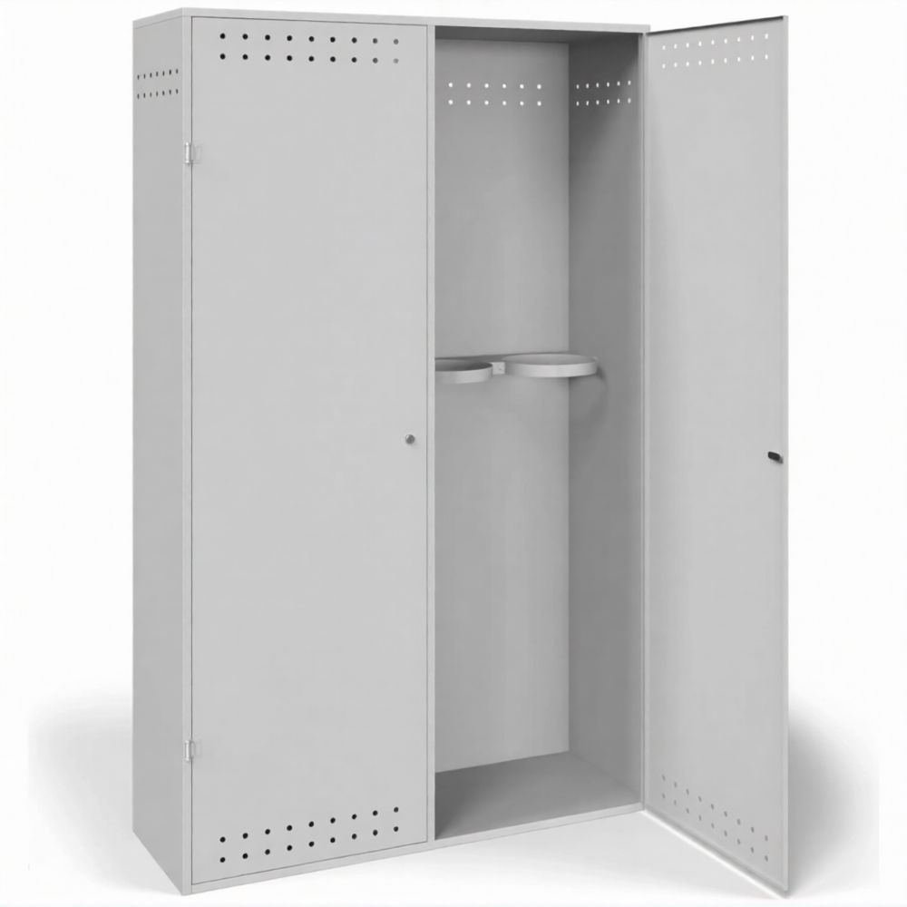 - Оптимальная вместимость для средних потребностей — шкаф идеально подходит для мастерских, участков и лабораторий, где одновременно используется до четырех газовых баллонов. Его габариты позволяют удобно разместить баллоны, обеспечивая к ним доступ, без излишнего занимания полезной площади помещения. Это популярный выбор для небольших сварочных постов или для хранения резервных баллонов.