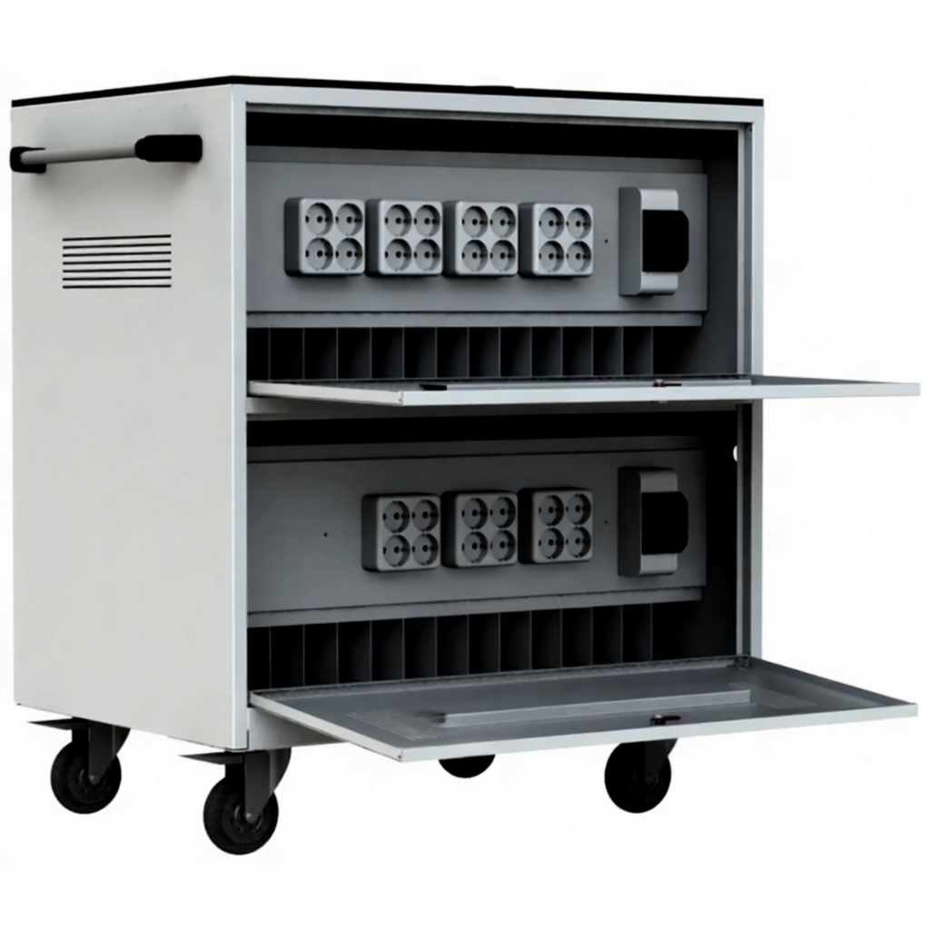 - Полная автоматизация зарядки — встроенная электросхема обеспечивает интеллектуальное распределение мощности, безопасно и одновременно заряжая все 30 ноутбуков от одной розетки, с защитой от перегрузок, короткого замыкания и контролем статуса каждого устройства.