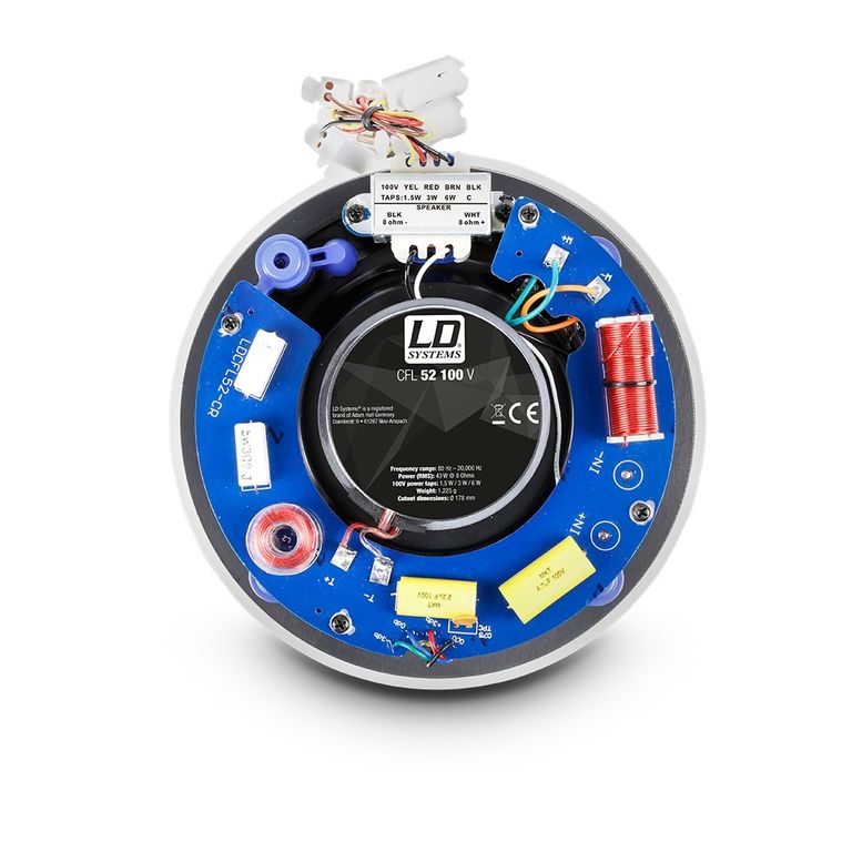 Инсталляционная акустическая система LD Systems Contractor CFL 52 100 V – безрамочная акустическая система предназначена для незаметного монтажа в стены помещений. Низкочастотный 5,25-дюймовый и высокочастотный 1,2-дюймовый излучатели защищены фронтальной решеткой с магнитным креплением. Частотный диапазон достигает 20 кГц, чувствительность составляет 88 дБ при 1 Вт/1 м, а продолжительная мощность – 40 Вт. CFL 52 100 V впечатляет отличным звуком и высокой разборчивостью речи. Встраиваемая акустическая система предназначена для широкого спектра применения в системах фонового звука в отелях, ресторанах, барах, салонах красоты, торговых центрах, учебных и конференц-залах. Разработана для СОУЭ в версии 100 В с трехпозиционным регулятором мощности от 1,5 до 6 Вт.